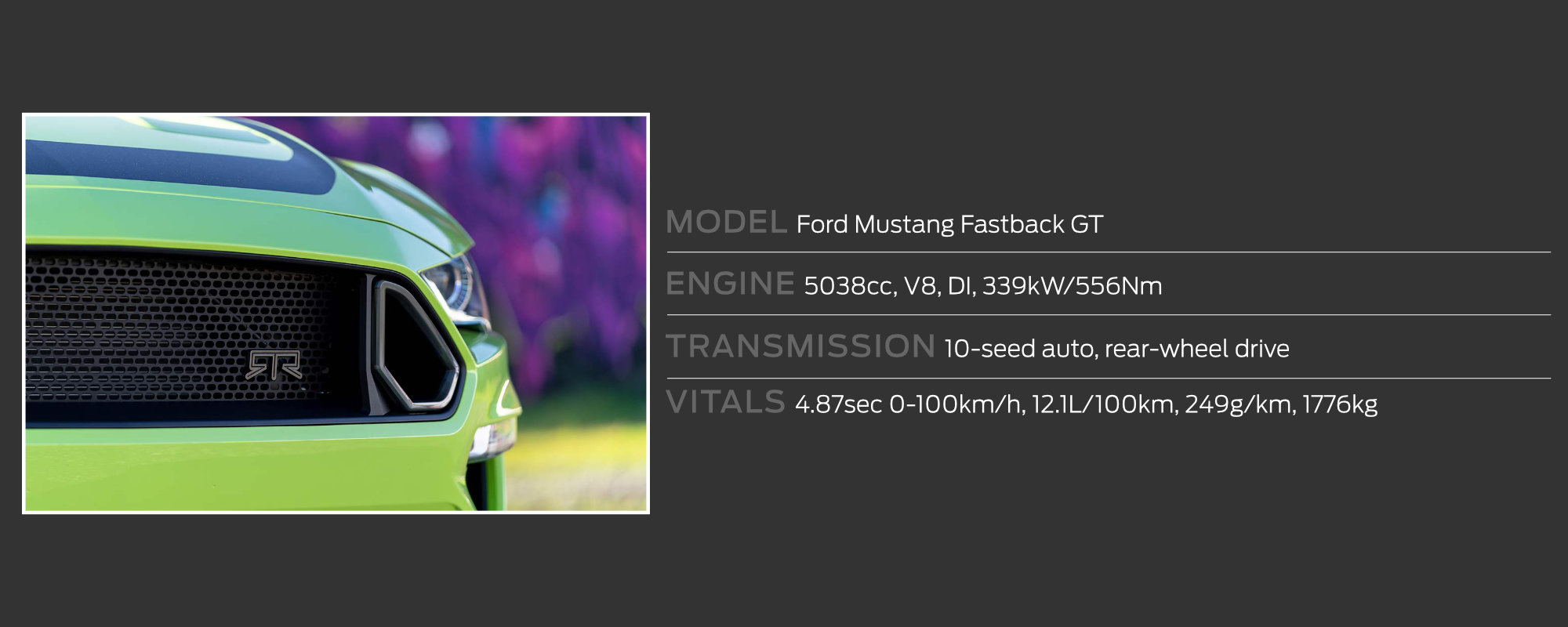 The Ford Mustang Fastback GT Series 1 RTR in Grabber Lime.