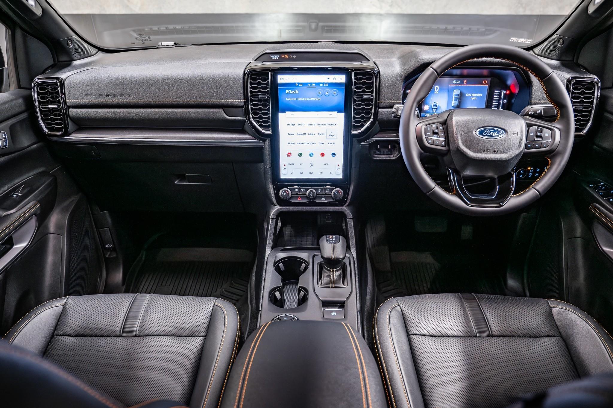 Added features of the Everest Wildtrak include: Unique Wildtrak accents and bonnet decal Unique 20 inch alloy wheels Panoramic Sunroof Wildtrak leather seats with orange stitching Silver roof rails