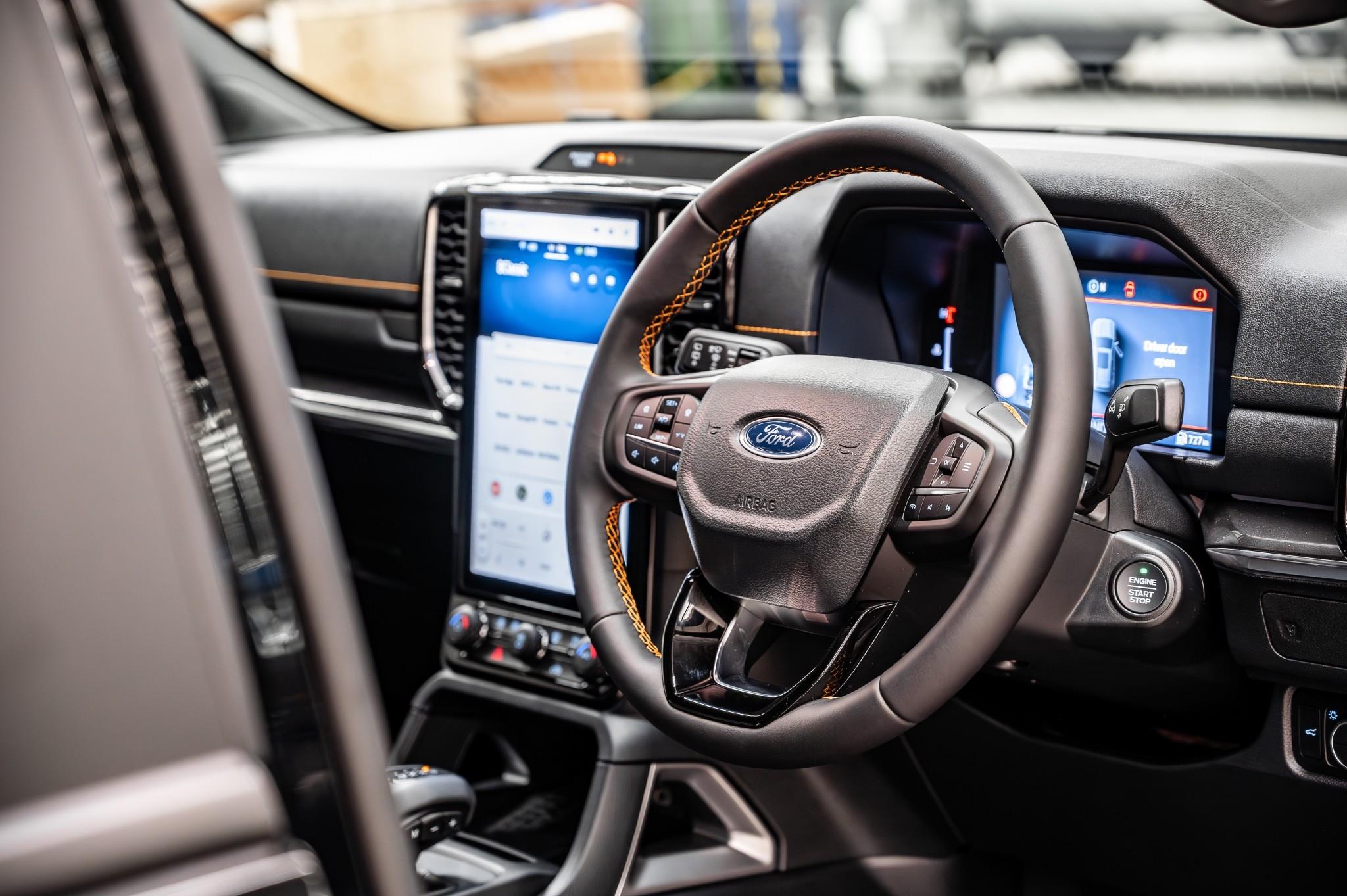 With a 3 litre V6 mated to the 10 speed gearbox, The Wildtrak adds premium finish, styling, and power above the Sport model. Featuring unique Cyber Orange stitching and signature 'Wildtrak' logo, on the front perforated ebony Leather seats, the Panoramic Sunroof adds light and a spacious feel of the interior.