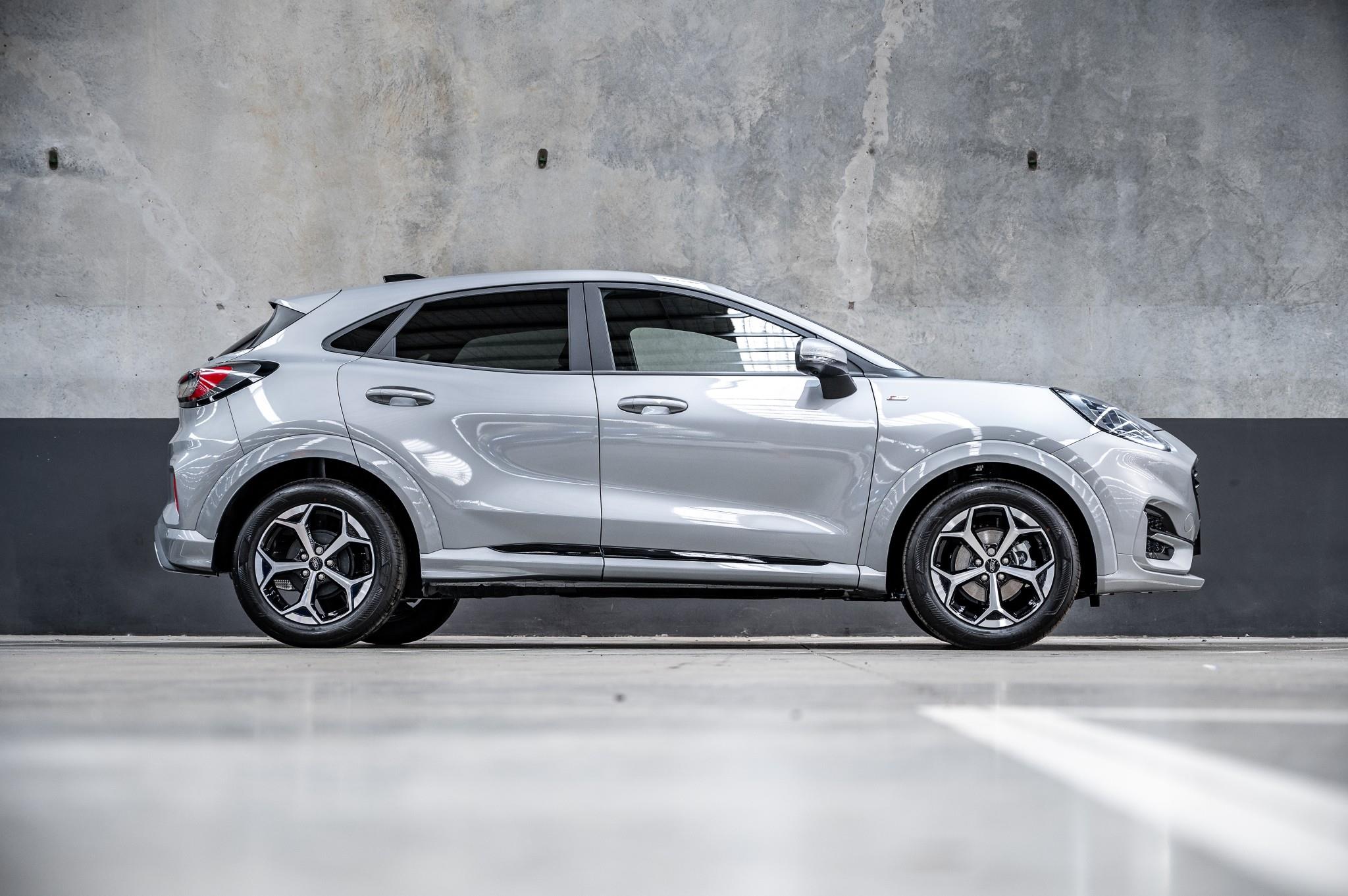 The ST-Line package gives the Puma a sharper, sportier look with standout styling, sleek alloy wheels, bold body detailing, and a refined interior with signature red stitching and ST-Line touches. It's compact enough for easy parking around town, while still offering impressive interior space and a practical boot.